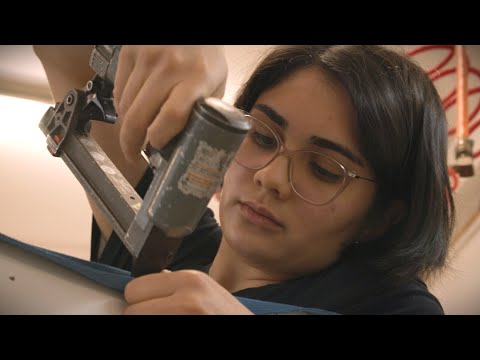 Als Raumausstatterin ist Azubi Ece eine echte Allrounderin von Textil bis Wand und Boden. Für das Xperience-Mobil fertigt sie super bequeme Möbelpolster. Very nice!
